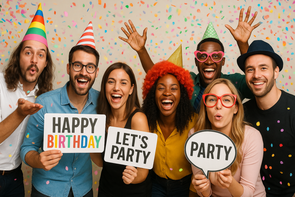 Ob Hintergrund, Requisiten oder Ausdruck-Design: Alles lässt sich individuell gestalten. Wir bieten auf Wunsch ein personalisiertes Foto-Layout – perfekt für Ihr Event. Logos, Hochzeitsdaten, Mottos oder Farbwelten – wir setzen Ihre Ideen kreativ um. Auch wechselnde Hintergründe (Weihnachten, Halloween etc.) sind möglich.