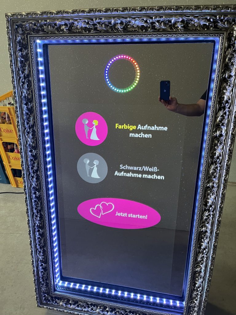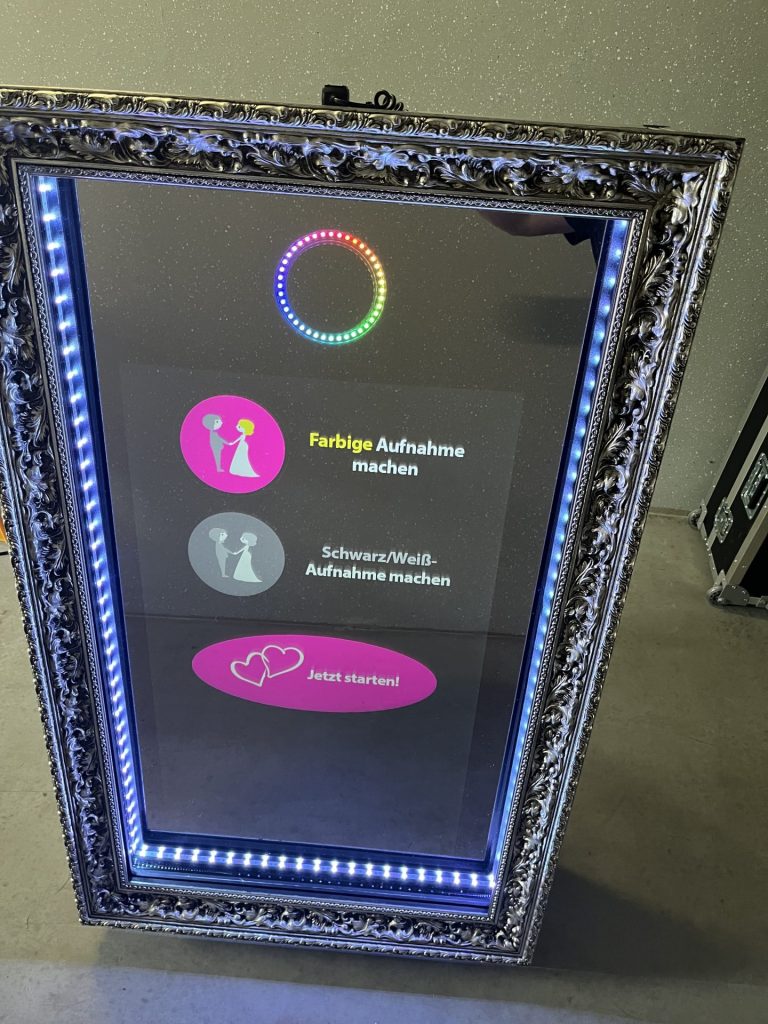 Der Fotospiegel ist mehr als eine Fotobox: Er kombiniert stilvolles Design mit modernster Technik und ist ein echter Hingucker auf jedem Event. Durch Live-View, Touchfunktion und individuelle Layouts wird jede Aufnahme zum Highlight..